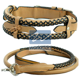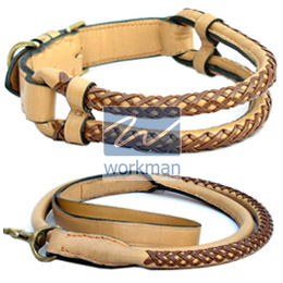 Dog Collar And Lead M/O Leather. 3 Twisted Leather Pieces Design. Special Mirror Polish Hardware.